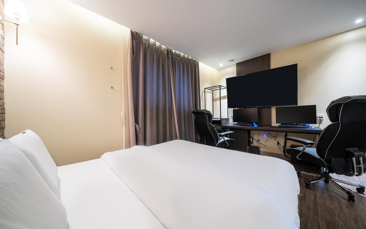 65인치 대형 스마트TV 2대로 넷플릭스, 유튜브, 웨이브 등 VOD 서비스 이용이 가능한 Galaxy Ultra 2PC 객실입니다.